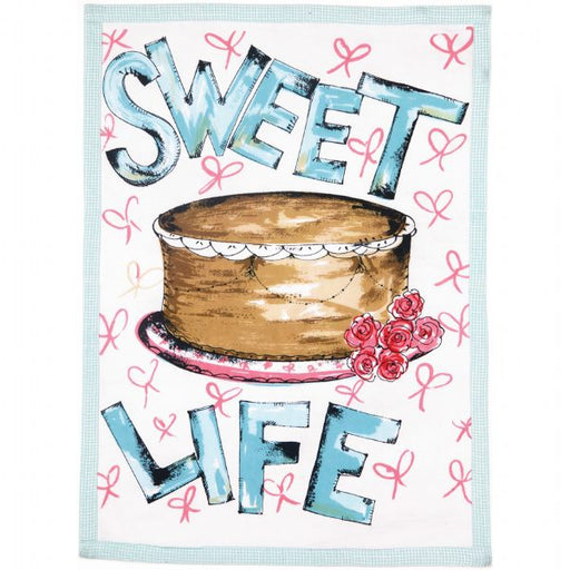 A Sweet Life it is! The perfect "retro" dish towel for the lover of baking. Details: Dimensions: 22" x 28" Contrast light blue/white grid wide tri...