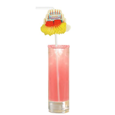 Retro plastic accordion Happy Birthday straws with crepe cake in two colors. Perfect for livening up any cocktail. Details: A packet of 12 plastic...