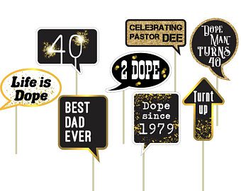 Set of 8 Photo Props include: 1. "Dope Man Turns 40" Oval Speech Bubble (Custom Saying) 2. "Celebrating Pastor Dee" Rectangular Speech Bubble (Cust...