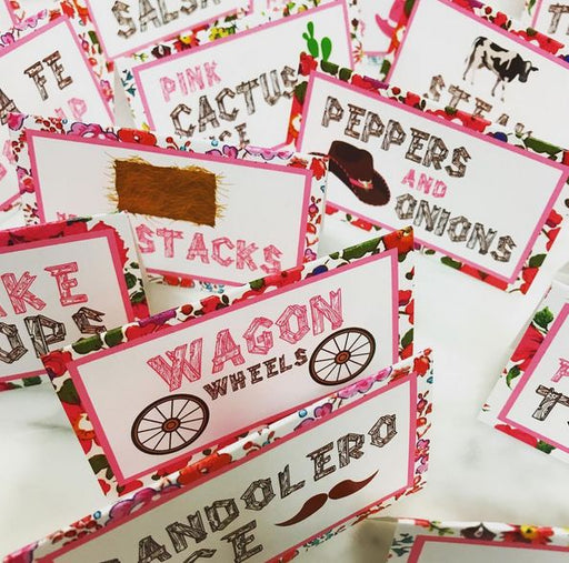 Cowgirl Food Tents. You will receive an emailed containing JPEG files within 24 hrs to print yourself. Set includes: