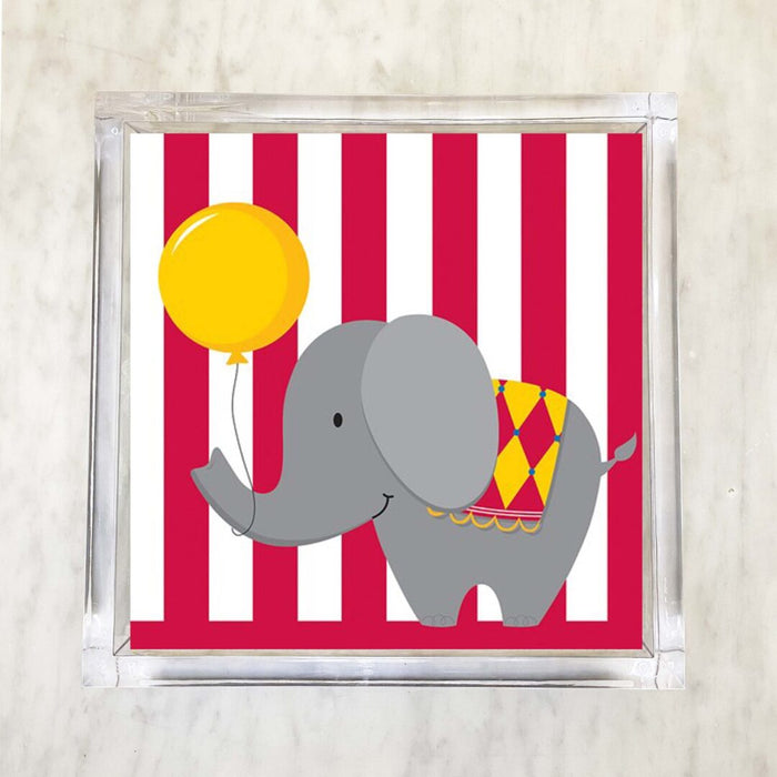 Red and White striped luncheon napkins with an adorable grey elephant with a yellow circle balloon.