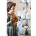 This divine Sacred Heart Child has beautiful aged finished and gold details throughout. A soothing blue eye life-like statue that will grace any space.